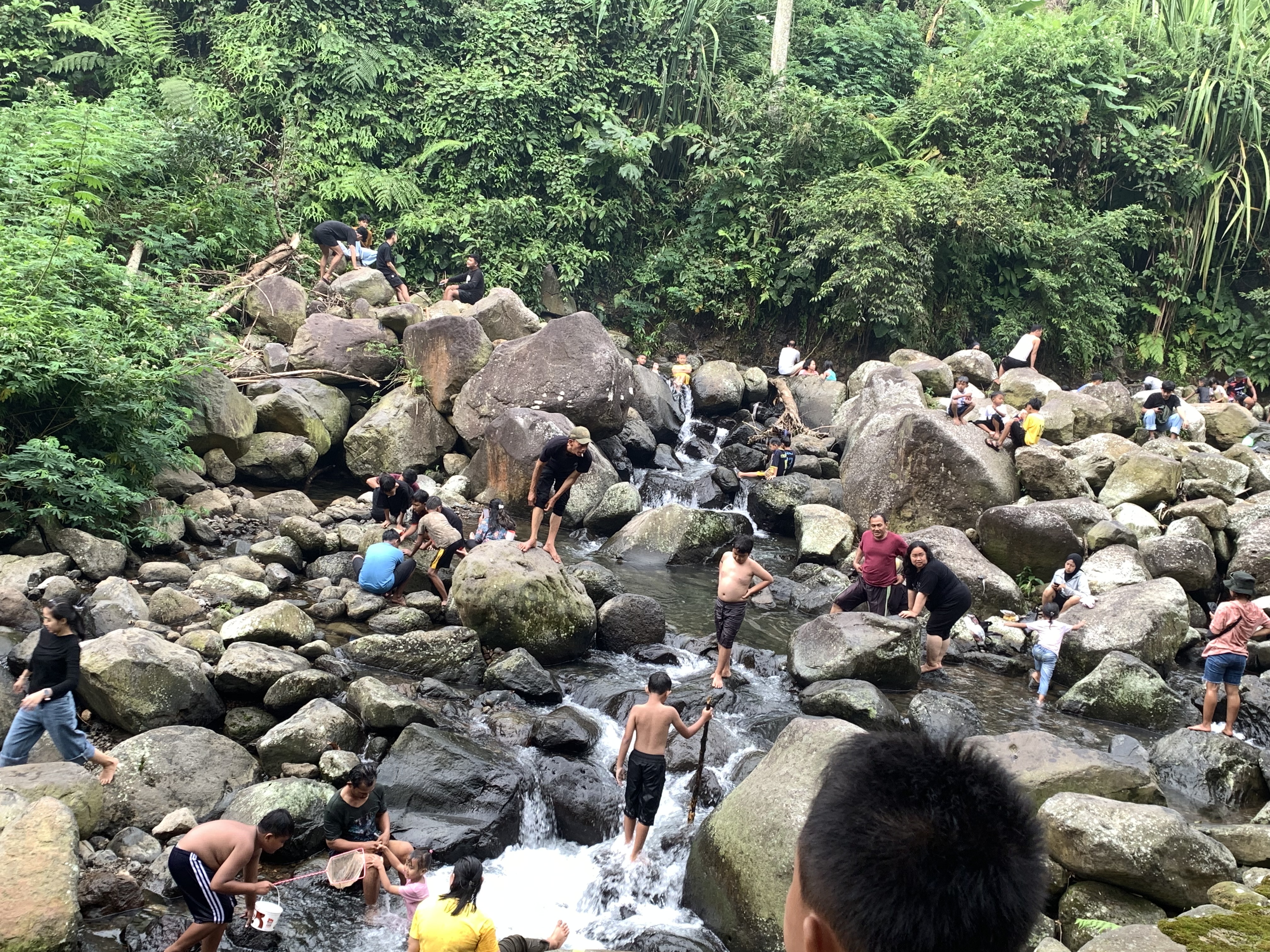 Memasuki kawasan ini, pengunjung langsung disuguhi panorama aliran sungai yang jernih dengan bebatuan besar yang tersebar alami. Pepohonan rindang dan hamparan hijau di sekelilingnya menciptakan atmosfer tenang yang jauh dari hiruk pikuk perkotaan. Aktivitas luar ruangan seperti bermain air di sungai dan berenang di kolam alami menjadi daya tarik utama, terutama bagi keluarga yang membawa anak-anak.